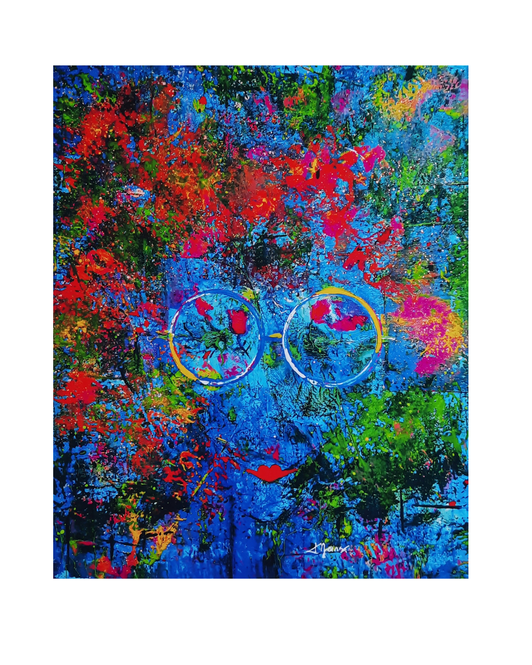 Through this piece, I explore the depths and the uniqueness of our individual perception, the way we experience, perceive, and interpret our reality. The vibrant blues and neon accents evoke a pulsating creative energy , metaphysical space where reality blends with the subconscious.